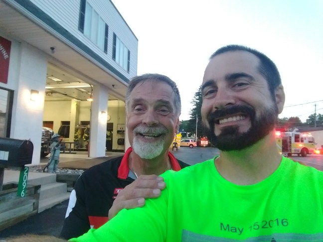 I was expecting to be solo on the road at the outset of the run. But the fire company provided me with a companion who ended up being my guardian angel for the run – Greg Kohlmaier.